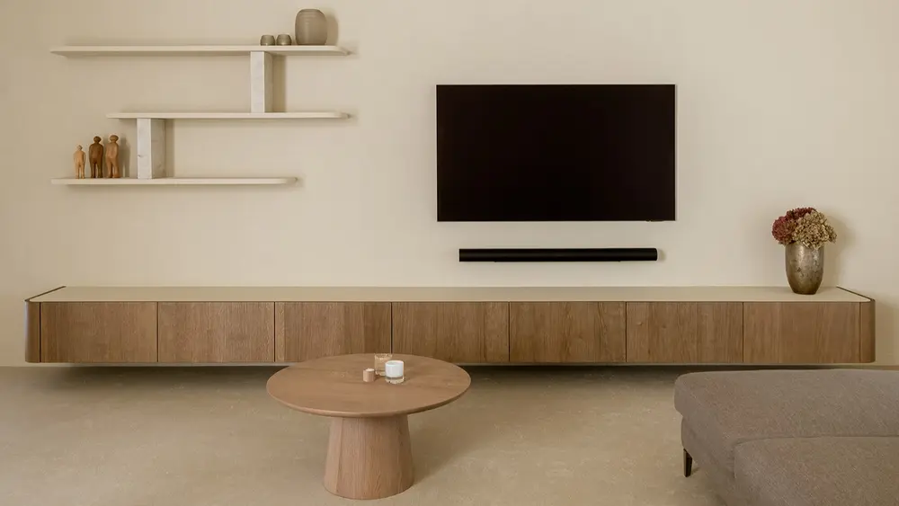 Voor een woning in Sint-Katelijne-Waver realiseerde DC Interieurschrijnwerk, in samenwerking met Mossoux Architecten, het volledige interieurschrijnwerk. Van keuken, leefruimte en vestiaire tot badkamer, bureau en logeerkamer - elk element werd op maat ontworpen.