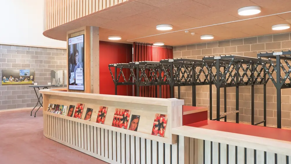Voor de renovatie van het onthaal van VITO Hoogstraten realiseerden de leerlingen van het 6de jaar Binnenschrijnwerk en Interieur een volledig nieuwe ontvangstzone, gebaseerd op het professionele ontwerp van LV-Architecten.